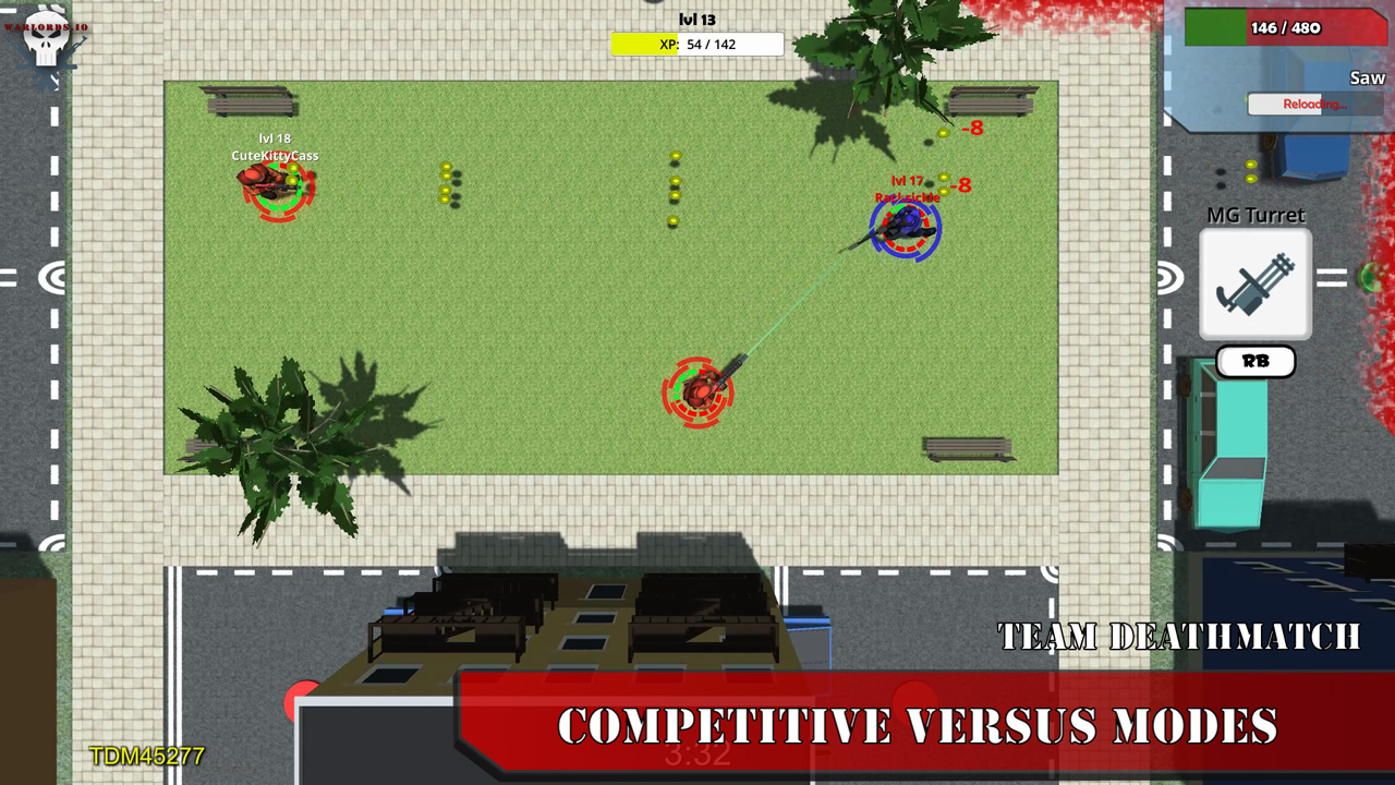 Warlords.io features several versus modes and a co-operative wave-based survival mode, all of which can be played together on any device. Warlords.io also features a special game mode that is rotated every month. These modes can be either a versus mode or co-operative mode, and might be a simple twists on base modes with tweaked player stats or a crazy random power weapons fiesta with 0 second cooldowns and quad damage and speed.