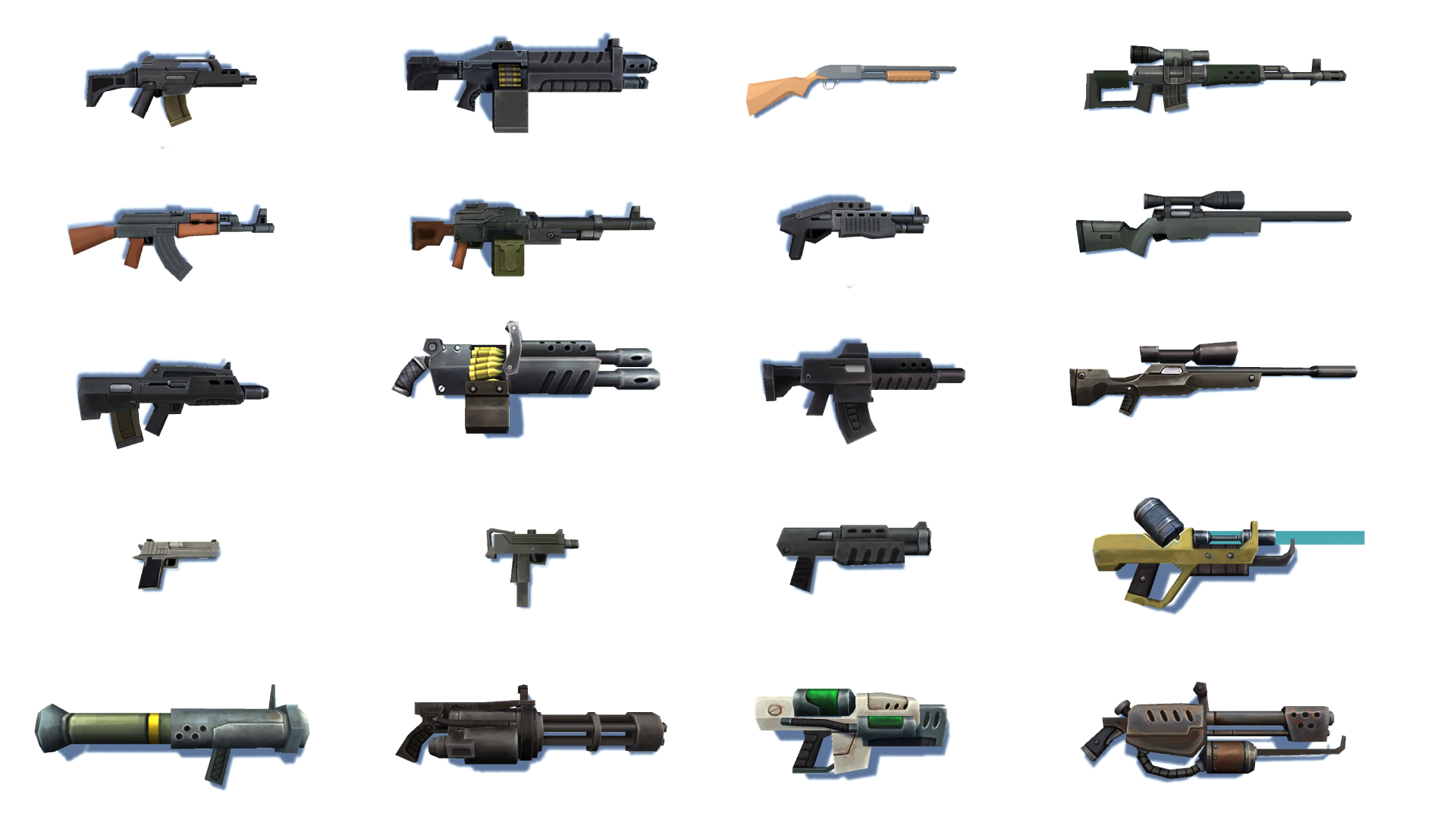 Every character class has a selection of primary weapons unique to each class that are designed to fill that classes specific role. All classes have access to the same selection of secondary weapons that allow players to compliment their primary weapons and play style in any way they see fit. These weapons' Damage, Rate of Fire, and Magazine size can be upgraded during the match with player skill points as you level up!