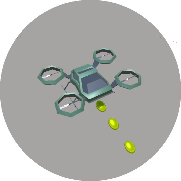 An automated Drone that follows the player arround the map and targets nearby enemies with its MG Turret dealing 6 dmg per bullet, firing at 360 rpm.